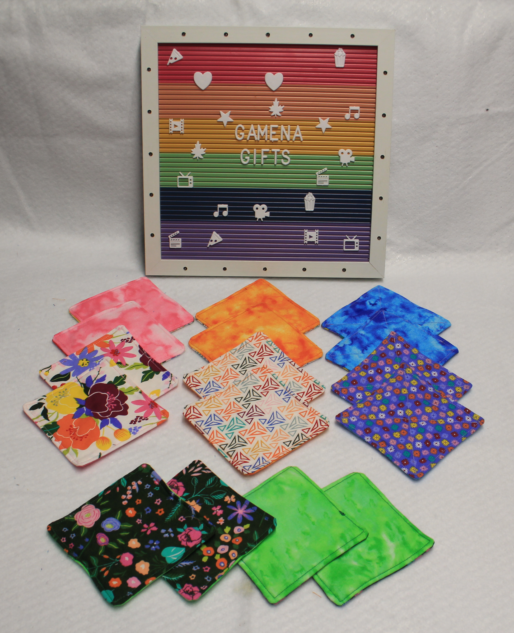 Handmade coasters made from 100% cotton scraps from quilts, some are from precut fabrics.