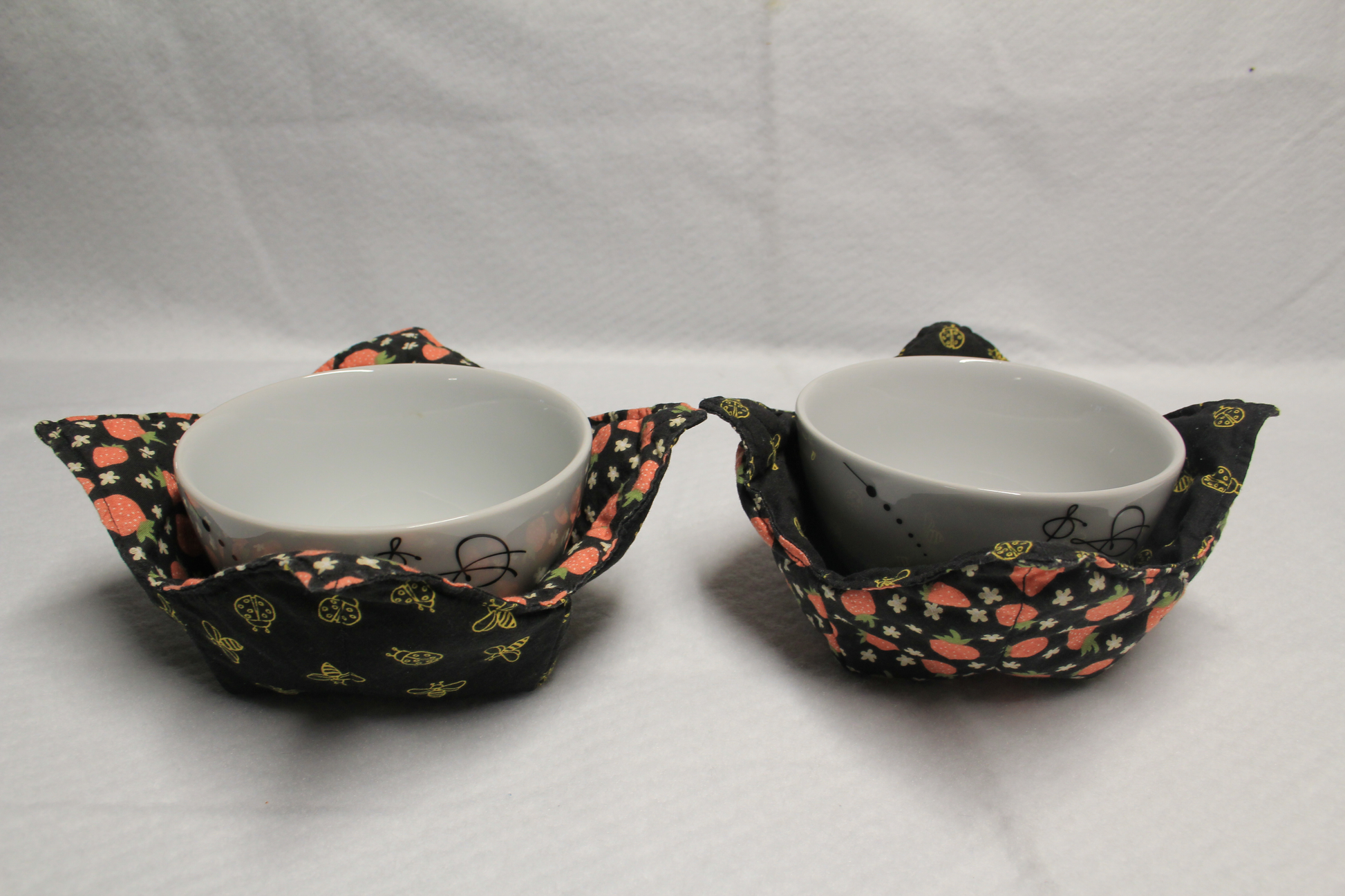 This is a bowl cozie, meant to go in the microwave with your bowl to protect your hands from the heat once it is done. They are reversible so you can have whichever side you want facing out.